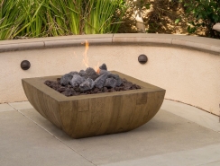 American Fyre Designs 36 Inch Bordeaux Square Reclaimed Wood Gas Fire Bowl - Manual Ignition