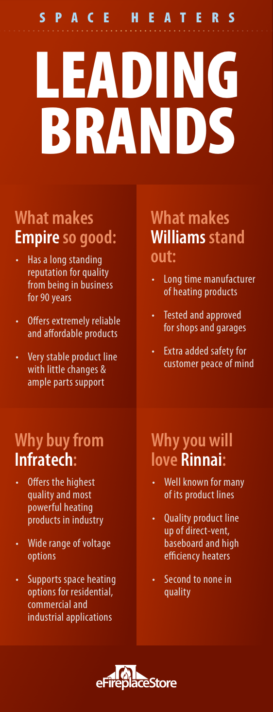 Infrared electric heaters are more effective at heating large rooms than the typical floor convection models. With both indoor and outdoor options, these make a great choice for customers who prefer electric but need more heat than the standard electric heaters.