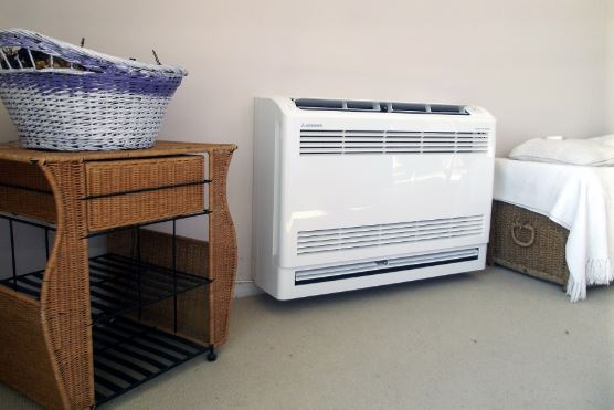 Vent-free wall heaters are the most compact space heaters. They attach to an interior wall of your home and burn gas fuel so efficiently that they don't need a venting system. They come in two categories: blue flame and infrared. Many models offer a separate floor stand in case you do not wish to mount it to the wall.