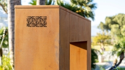 The Outdoor Plus 96 Inch Corten Steel See Through Outdoor Gas Fireplace - Low Voltage Ignition
