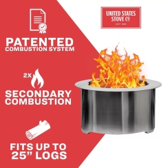 US Stove 31 Inch Smokeless Wood Burning Fire Pit with Ash Shovel